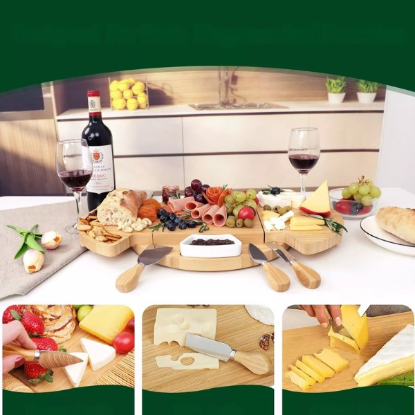 Il vassoio viene fornito con 3 ciotole in ceramica e 3 utensili in acciaio inossidabile. Usa il coltello, la spatola e la forchetta inclusi per affettare e servire, mentre le ciotole contengono ordinatamente olive, noci o salse – tutto ciò di cui hai bisogno è in un unico set.