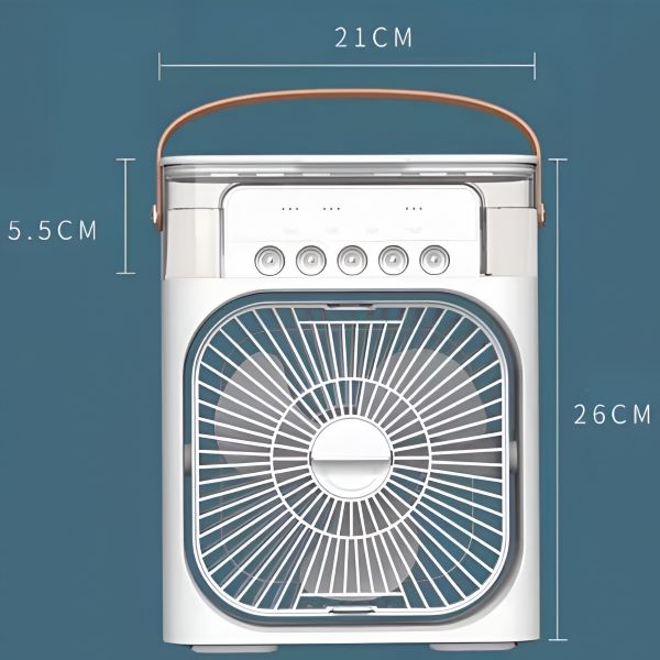 Con un serbatoio dell’acqua da 600 ml, questo condizionatore portatile garantisce un raffreddamento e un’umidificazione prolungati, perfetti per ore di utilizzo senza frequenti ricariche.