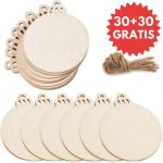 60 dischi di legno grezzi e 60 spaghi di juta,