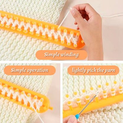 Questo strumento è incredibilmente facile da usare: tutto ciò che deve fare è passarci sopra la lana e avvolgerla attorno ai piruli. Una volta che ha finito, tiri fuori la lana dallo strumento!
